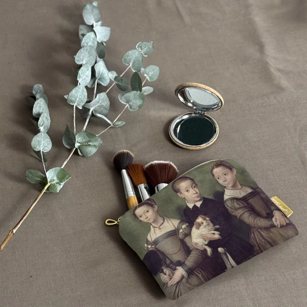- Artystyczna kosmetyczka mini z nadrukiem obrazu Troje dzieci z psem ✨ – idealna dla miłośników malarstwa i pięknych detali. Lekka, praktyczna i stylowa, sprawdzi się w podróży i na co dzień❤️