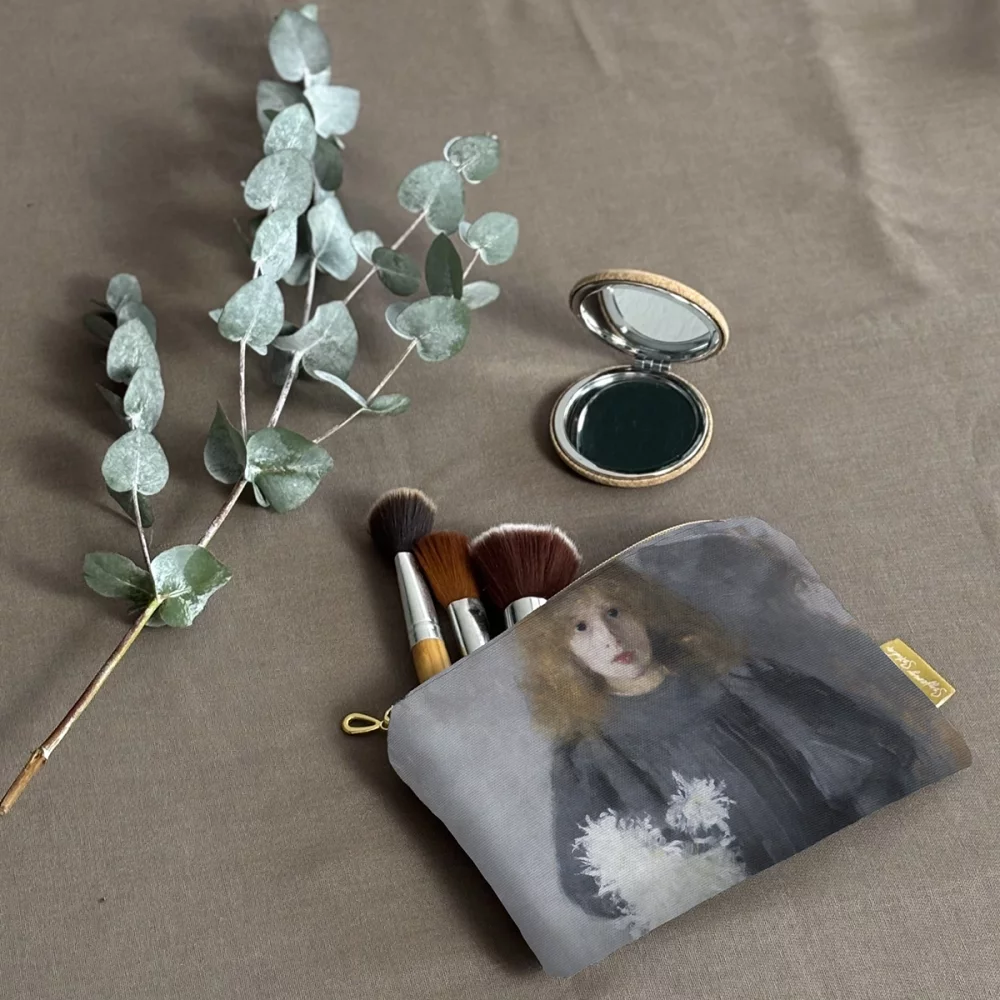 - Artystyczna kosmetyczka mini z nadrukiem obrazu Dziewczyna z chryzantemami ✨ – idealna dla miłośników malarstwa i pięknych detali. Lekka, praktyczna i stylowa, sprawdzi się w podróży i na co dzień❤️