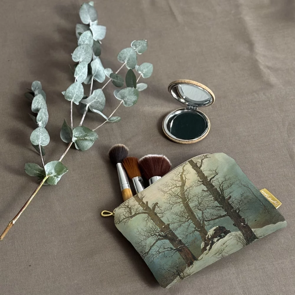 • Artystyczna kosmetyczka mini z nadrukiem obrazu Dolmen w śniegu ✨ – idealna dla miłośników malarstwa i pięknych detali. Lekka, praktyczna i stylowa, sprawdzi się w podróży i na co dzień❤️