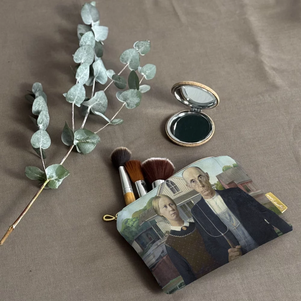 - Artystyczna kosmetyczka mini z nadrukiem obrazu American Gothic ✨ – idealna dla miłośników malarstwa i pięknych detali. Lekka, praktyczna i stylowa, sprawdzi się w podróży i na co dzień❤️