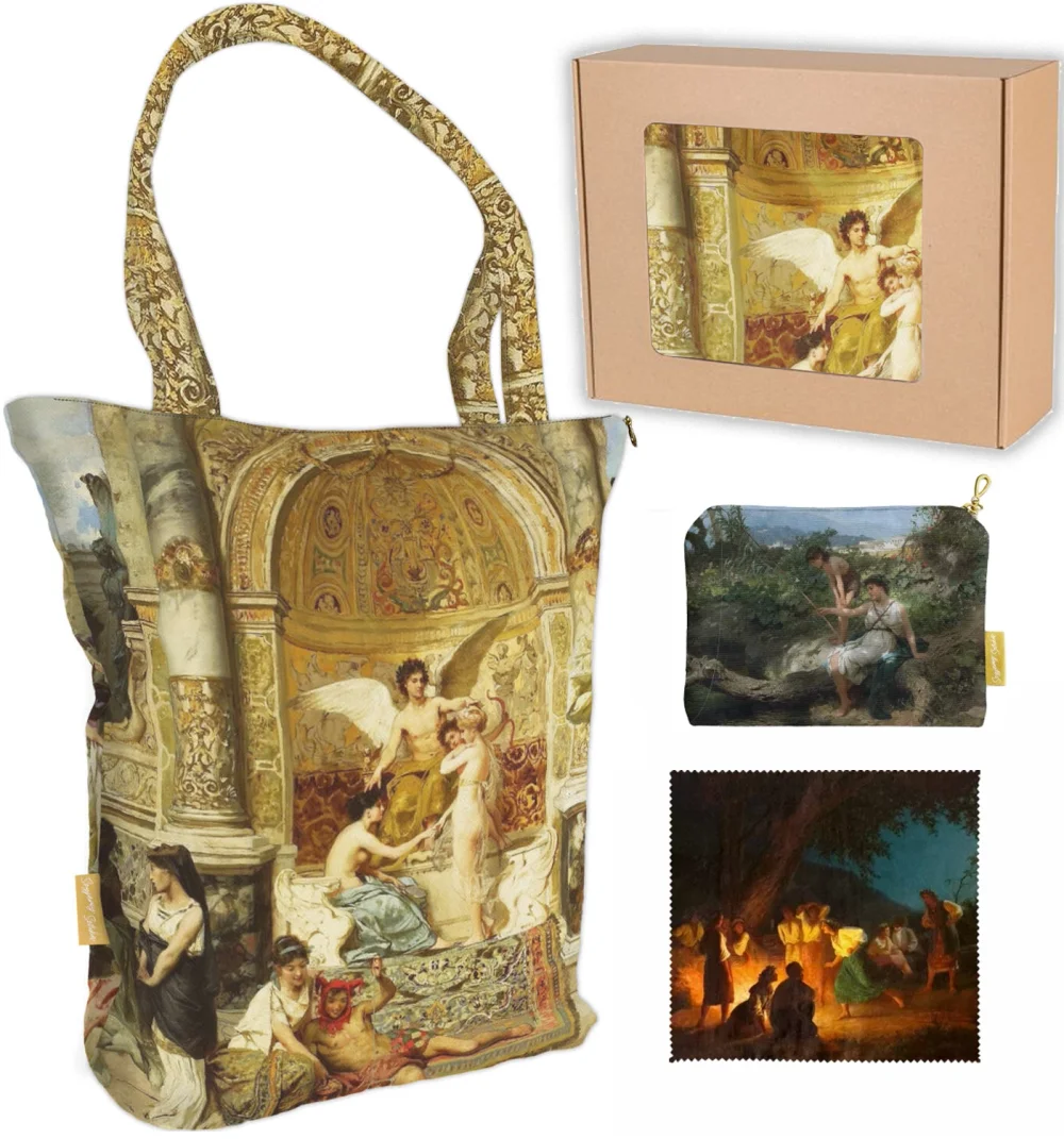 Zestaw Henryk Siemiradzki – Zestaw inspirowany Siemiradzkim to elegancja akademizmu i monumentalne piękno antycznych scen. Idealny upominek dla wielbicieli klasyki i sztuki w najwyższym wydaniu. W zestawie to Ty wybierasz jaki obraz nadrukujemy na torbie, ściereczce i kosmetyczce. Na każdym produkcie wybierz obraz który chcesz.