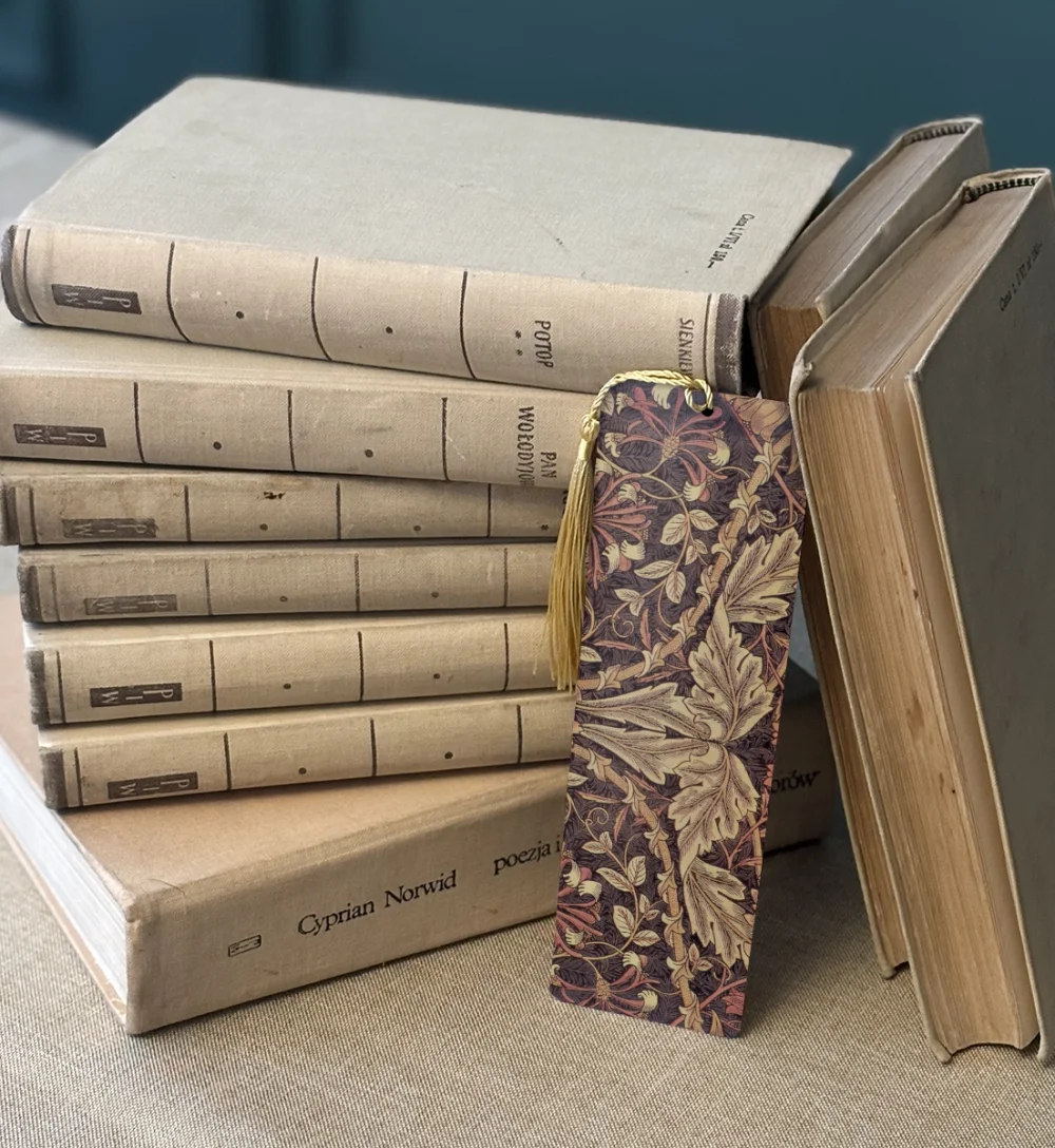 Zakładka do książki z obrazem Tkanina z wiciokrzewem William Morris