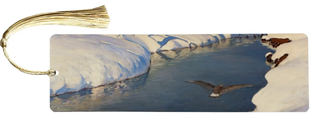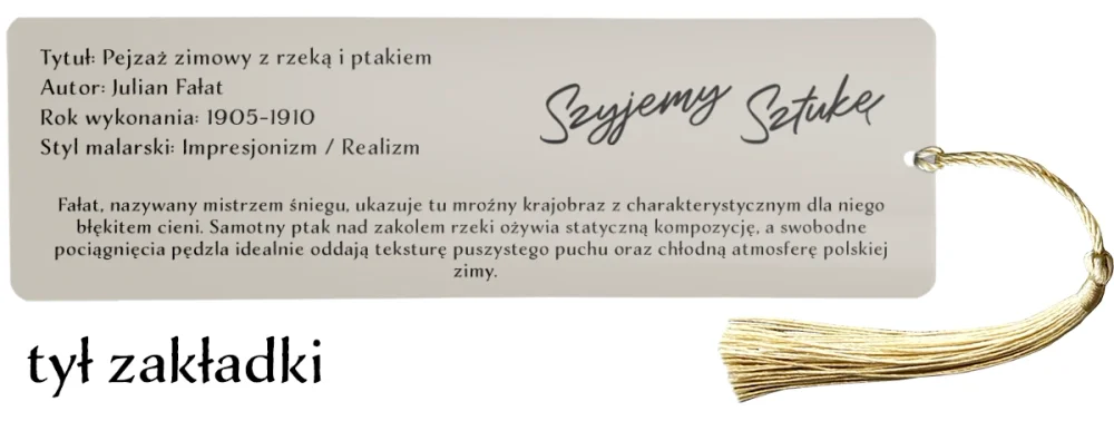 Zakładka do książki z obrazem Pejzaż zimowy z rzeką i ptakiem Julian Fałat