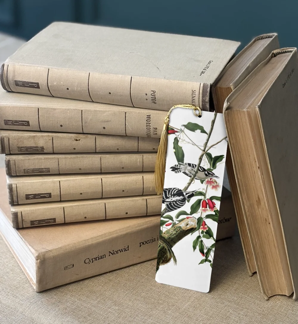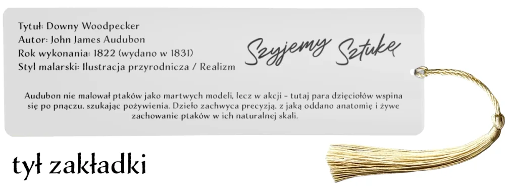 Zakładka do książki z obrazem Downy Woodpecker James Audubon
