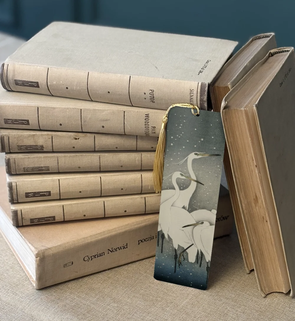 Zakładka do książki z obrazem Grupa czapli Ohara Koson