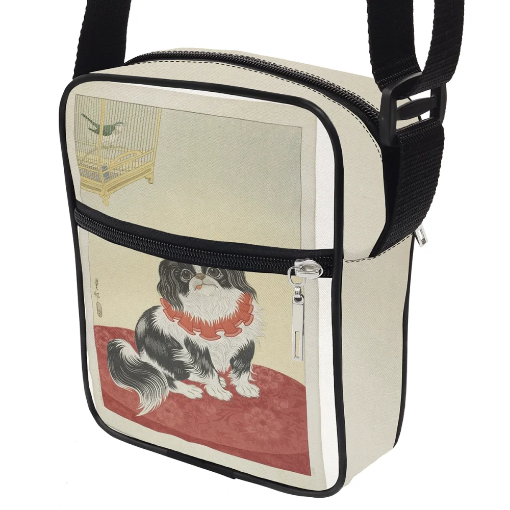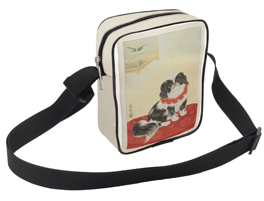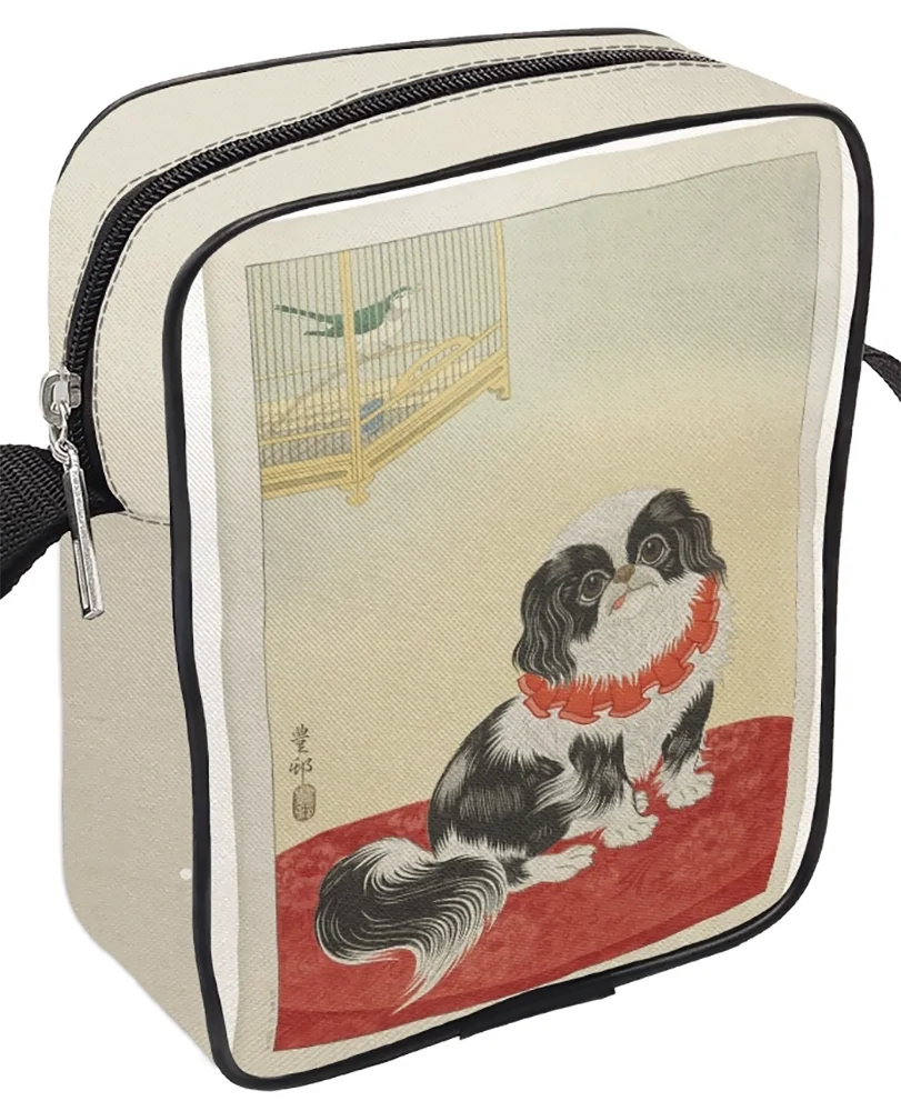 • Torba Listonoszka Pies pekińczyk Ohara Koson z nadrukiem FullPrint inspirowanym sztuką ✨ Kompaktowa torba na ramię, szyta w Polsce ✂️ z trwałego materiału, z możliwością dodania własnego napisu ✍️.