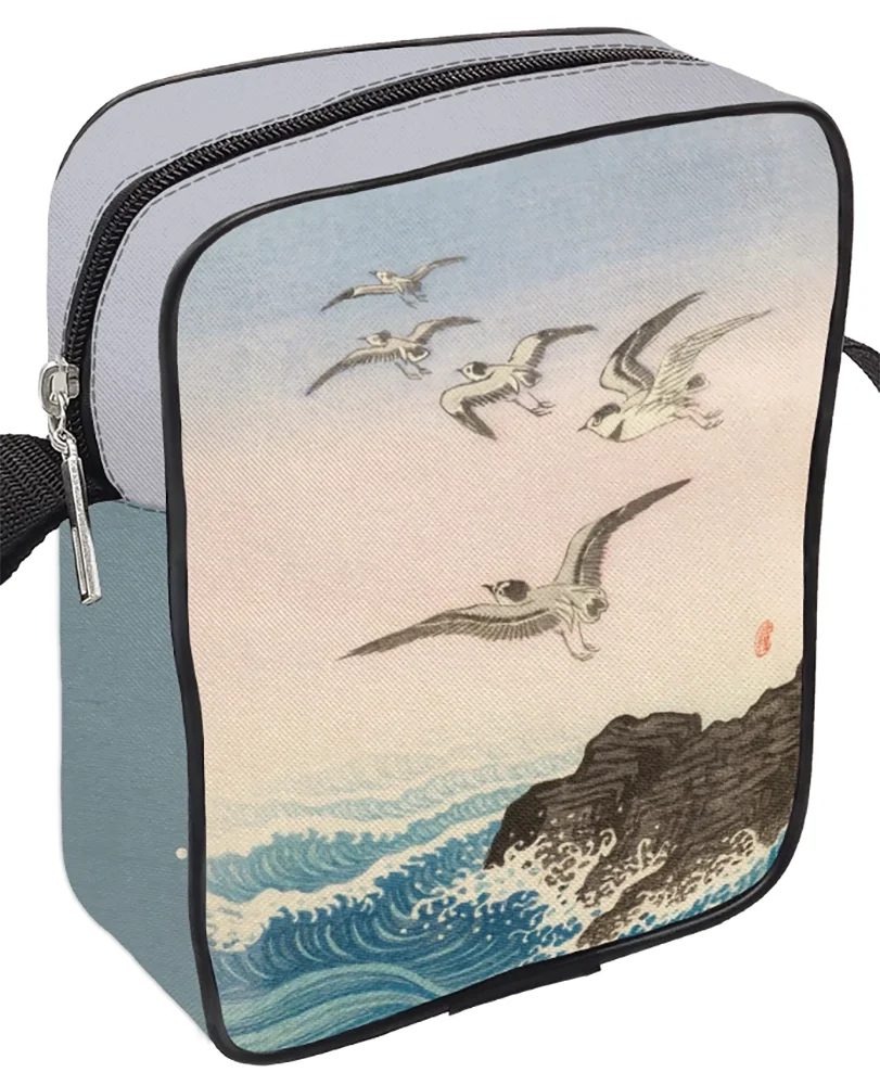 - Torba Listonoszka Pięć mew nad skałą w morzu Ohara Koson z nadrukiem FullPrint inspirowanym sztuką ✨ Kompaktowa torba na ramię, szyta w Polsce ✂️ z trwałego materiału, z możliwością dodania własnego napisu ✍️.