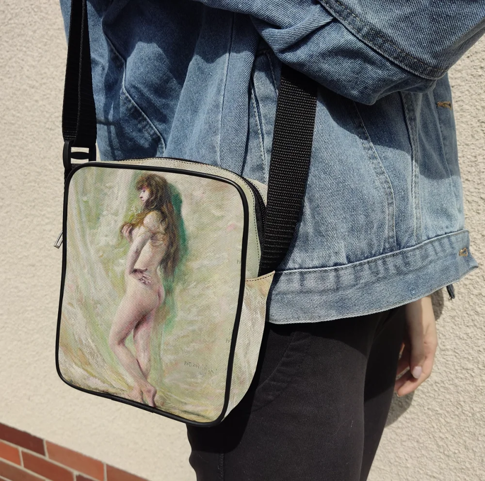 Torba listonoszka z nadrukiem FullPrint ze sklepu Szyjemy Sztukę to połączenie funkcjonalności i miłości do malarstwa. Kompaktowy format sprawia, że zmieścisz w niej telefon, portfel, klucze i inne najpotrzebniejsze drobiazgi, a wyjątkowy nadruk z reprodukcją obrazu nadaje jej niepowtarzalny charakter. To idealna torba na co dzień – do pracy, na spacer, do galerii czy na spotkanie ze znajomymi ✨