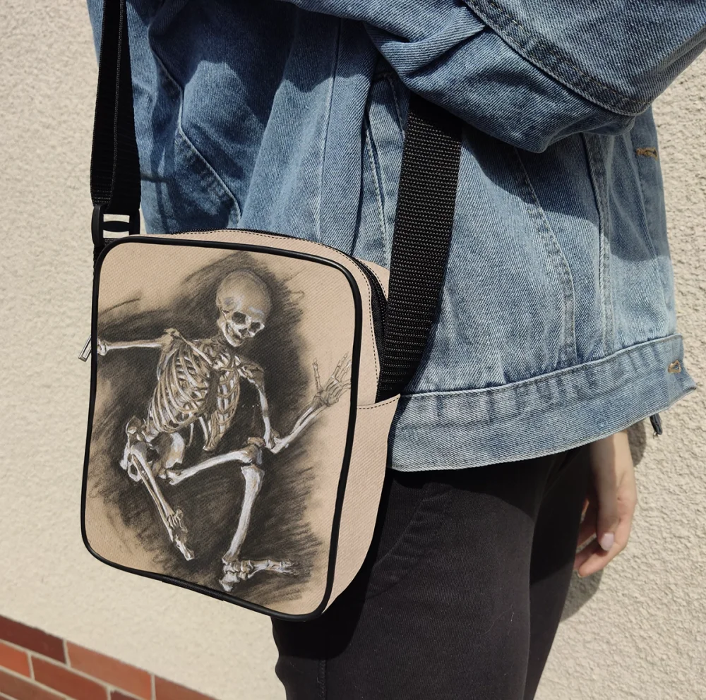 • Torba Listonoszka Studium szkieletu Władysław Podkowiński z nadrukiem FullPrint inspirowanym sztuką ✨ Kompaktowa torba na ramię, szyta w Polsce ✂️ z trwałego materiału, z możliwością dodania własnego napisu ✍️.