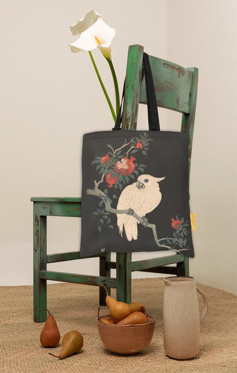 Ohara Koson – Biała papuga i granat | Torba shopper z nadrukiem dzieła sztuki, dla miłośnika sztuki 🎨