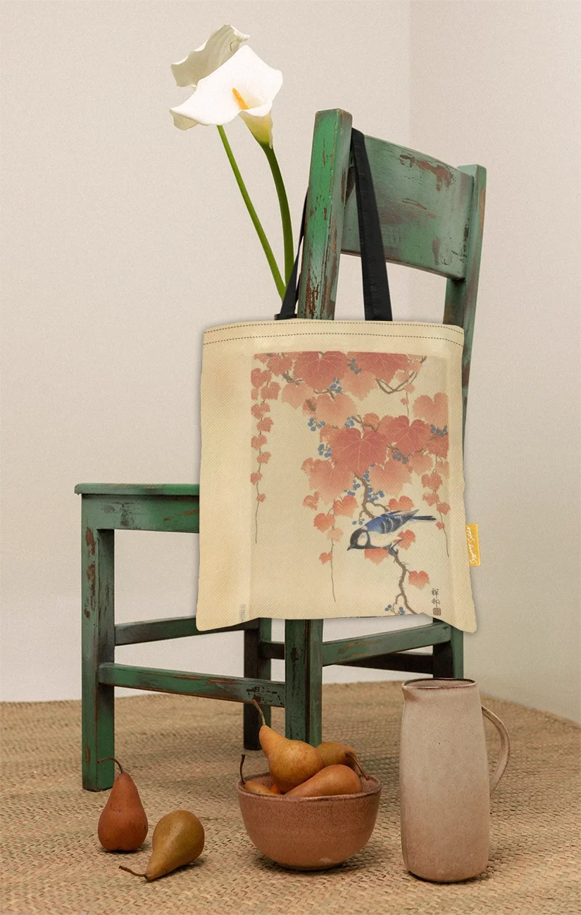Ohara Koson – Sikora bogatka na gałęzi paulowni | Torba shopper z nadrukiem dzieła sztuki, dla miłośnika sztuki 🎨