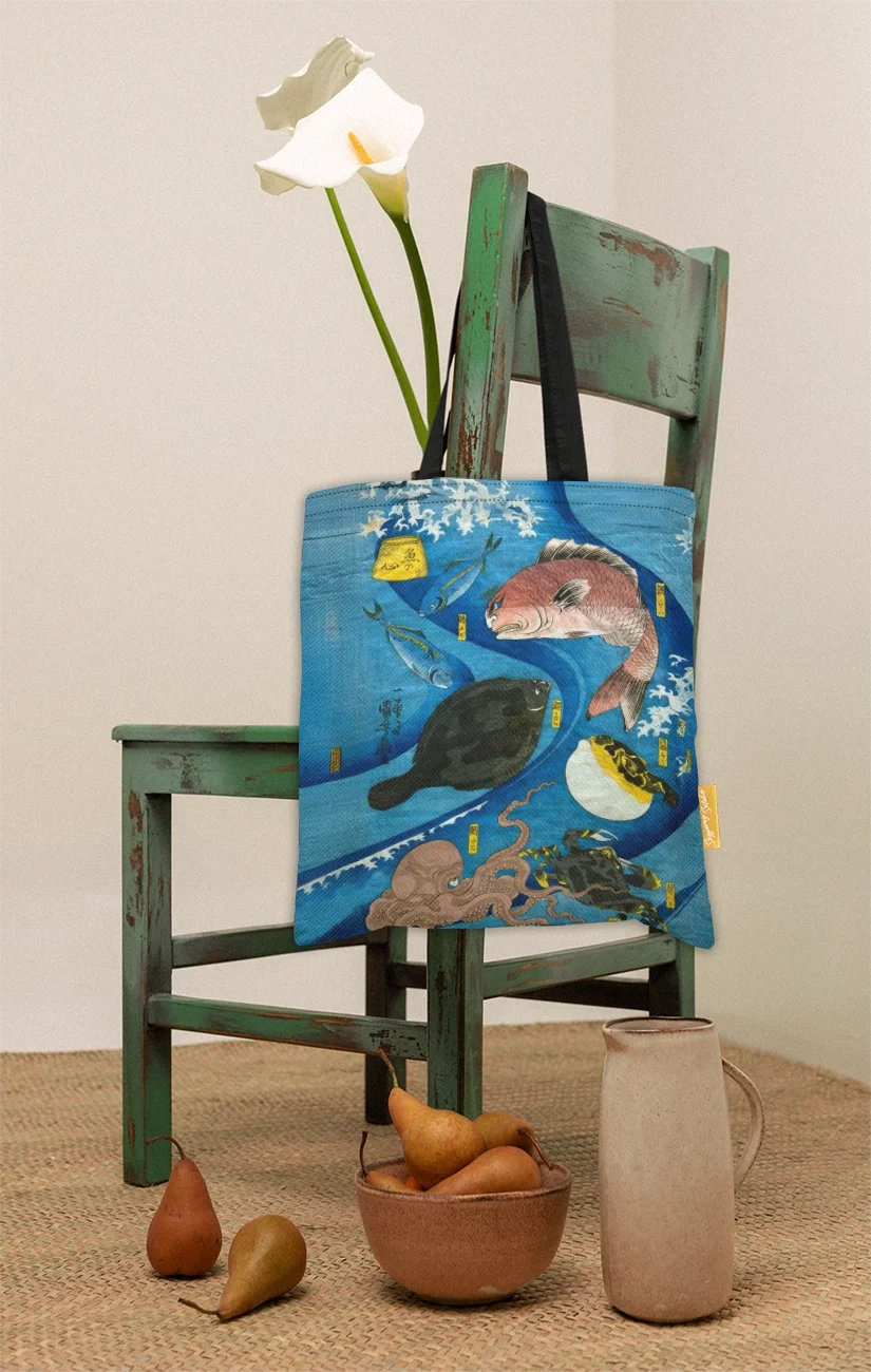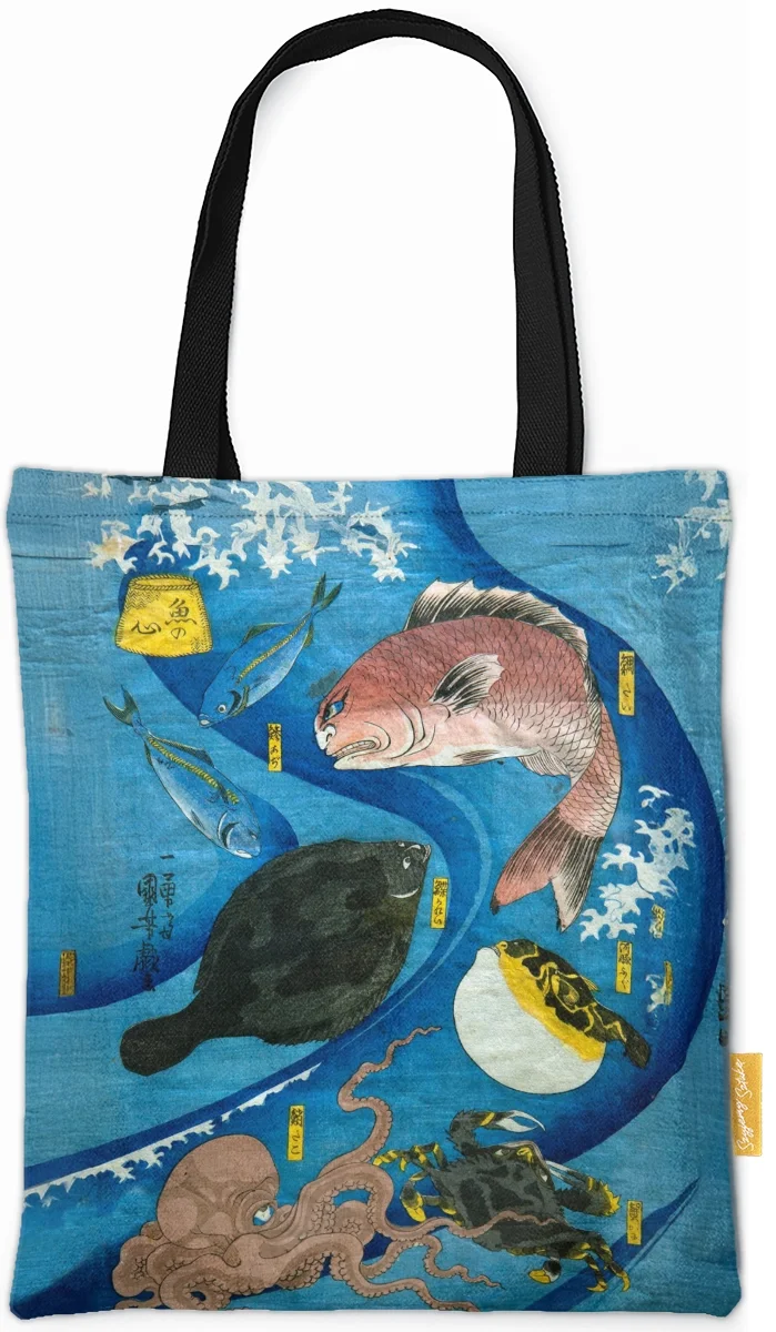 Utagawa Kuniyoshi – Umysły ryb | Torba shopper z nadrukiem dzieła sztuki, dla miłośnika sztuki 🎨