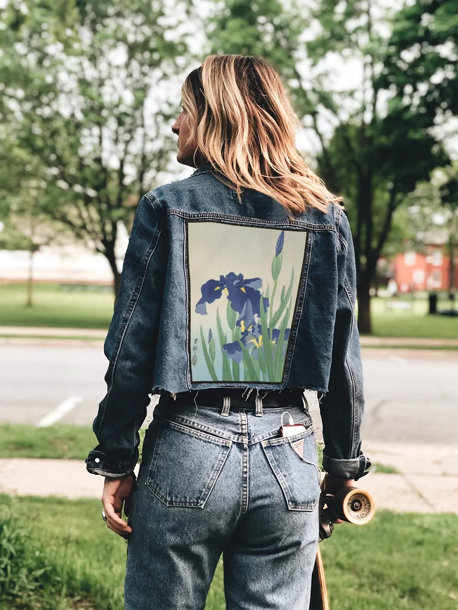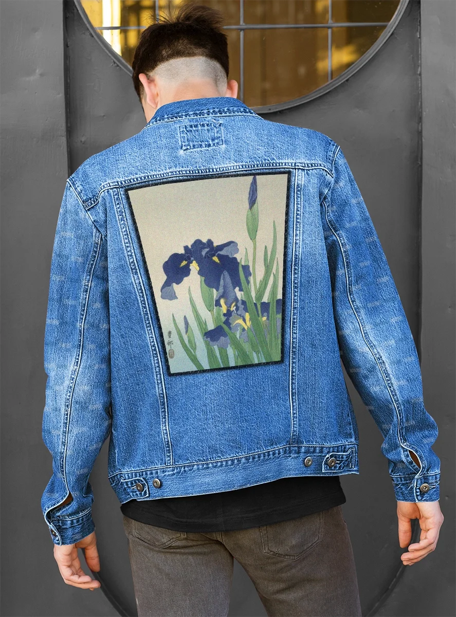 Ekran na plecy – duża naszywka z obrazem Irys – Ohara Koson