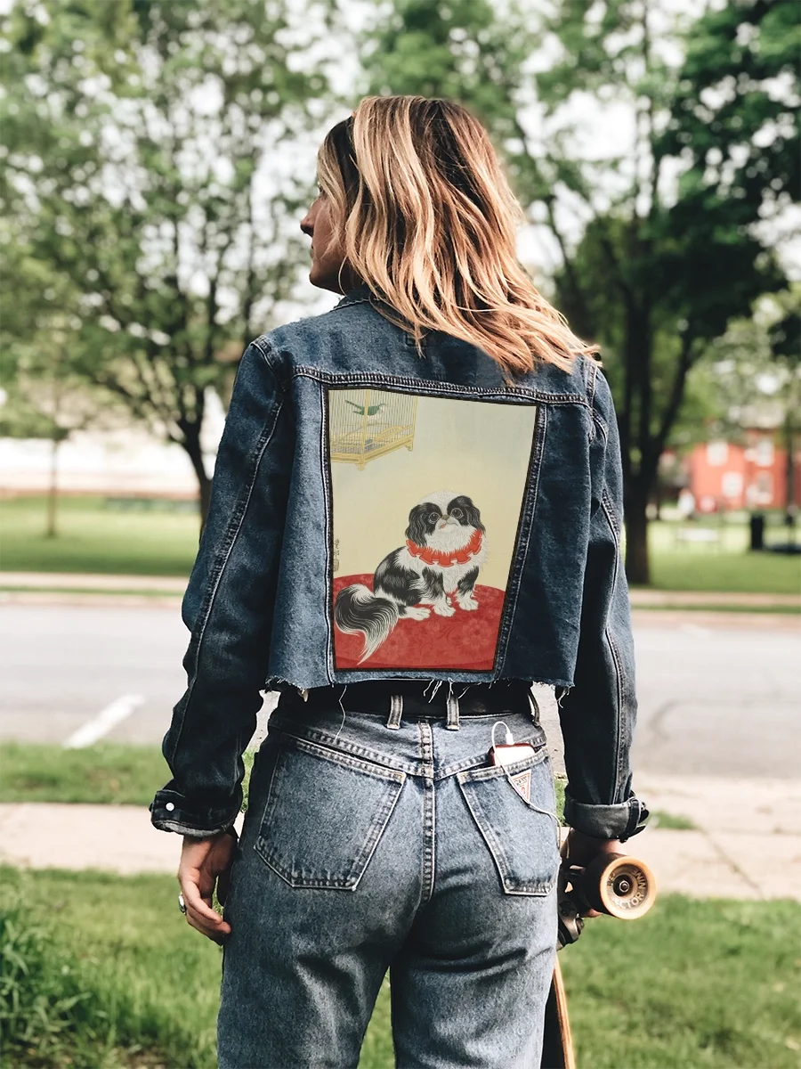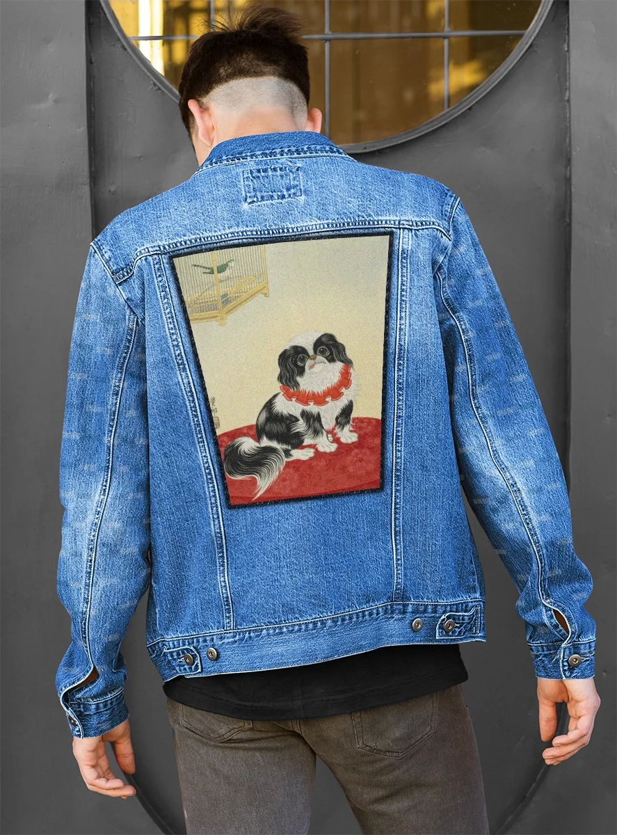 Ekran na plecy – duża naszywka z obrazem Pies pekińczyk – Ohara Koson
