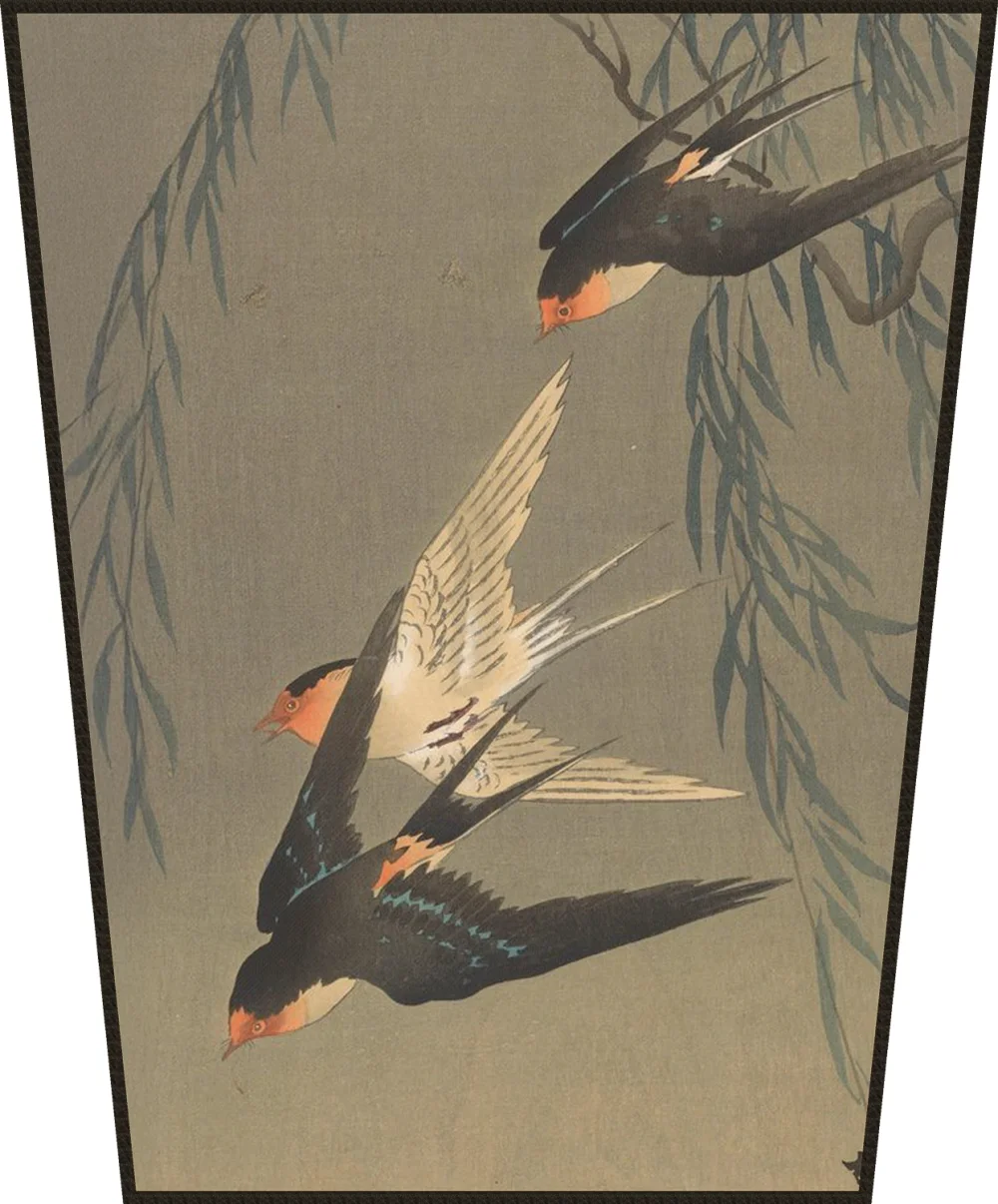 Ekran na plecy – duża naszywka z obrazem Trzy jaskółki rdzawoczerwone podczas nurkowania – Ohara Koson