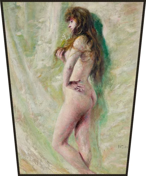 Władysław Podkowiński w swoim dziele Konwalia uchwycił moment niemal intymnego spotkania kobiety z naturą, gdzie granica między niewinnością a zmysłowością staje się prowokacyjnie cienka. Choć modelka trzyma w dłoniach skromny bukiet wiosennych kwiatów, to jej półnagi profil i rozmarzone spojrzenie nadają scenie gęstą, erotyczną atmosferę, która w tamtych czasach elektryzowała warszawską publiczność. Artysta po mistrzowsku wykorzystał zdobycze impresjonizmu, pozwalając słońcu grać na jasnej skórze i białych płatkach, przez co obraz wydaje się niemal wibrować od światła i wiosennego zapachu. To malarstwo pełne niedopowiedzeń, które zamiast opowiadać konkretną historię, uderza wprost w emocje i zmysły widza, stanowiąc doskonały przykład tego, jak jeden rekwizyt może całkowicie zmienić charakter portretu.