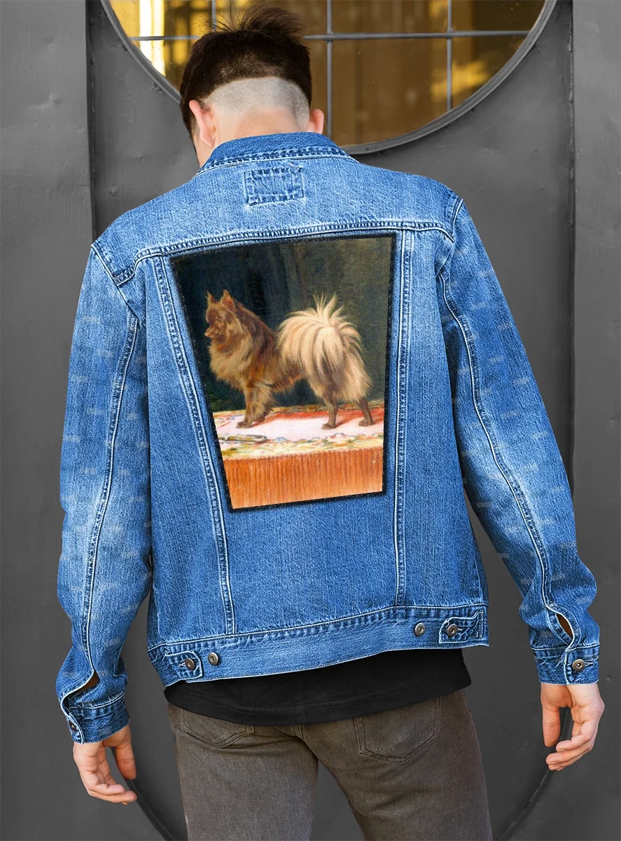 Ten dostojny portret szpica ukazuje psa jako eleganckiego domownika dumnie prezentującego się na bogato zdobionym stole. Trood z wielką precyzją oddał puszystość brązowej sierści, która efektownie odcina się od ciemnego, aksamitnego tła i jasnej firanki. Obecność książki oraz listu nadaje scenie salonowego szyku, sugerując wysoką pozycję społeczną właścicieli czworonoga. To kwintesencja wiktoriańskiego stylu, w którym każdy detal podkreśla szlachetny charakter i czujność portretowanego pupila.