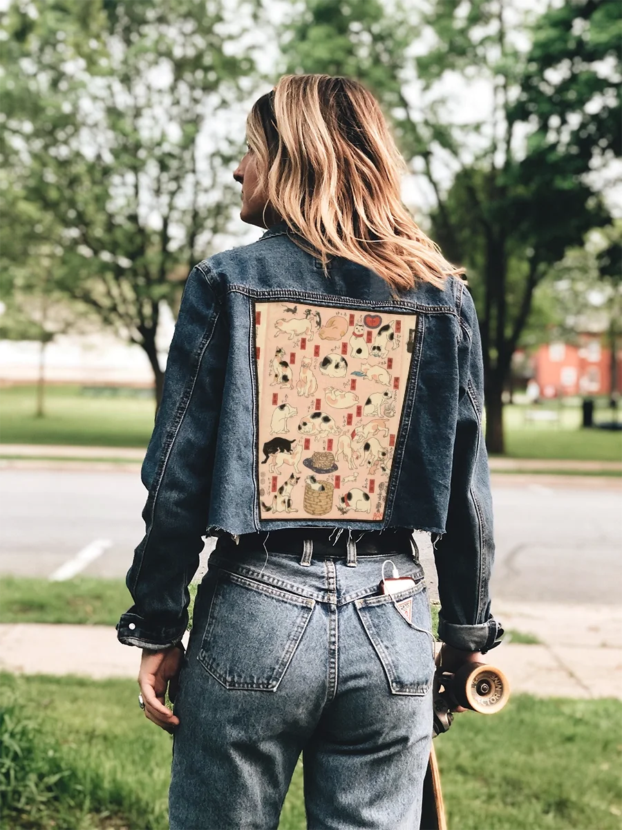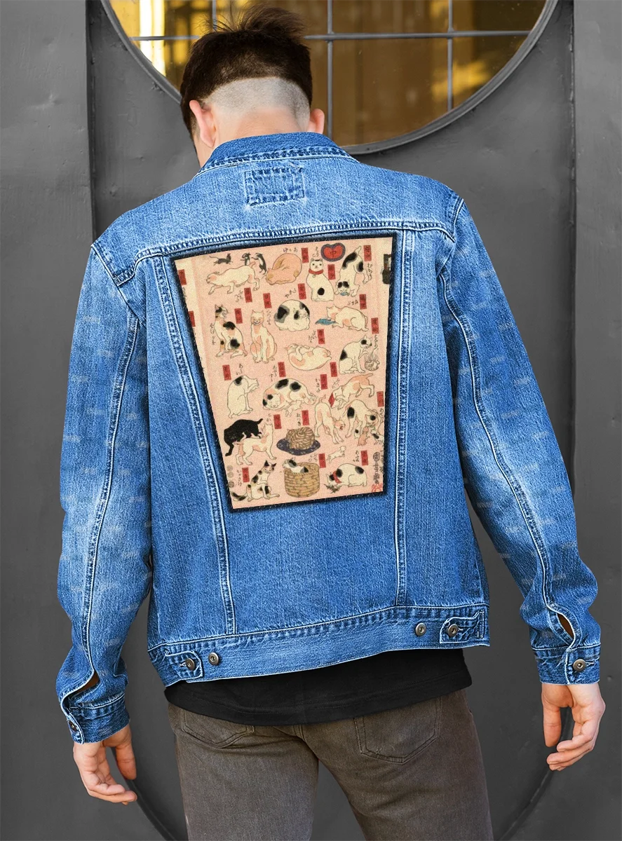Ekran na plecy – duża naszywka z obrazem 55 kotów reprezentujących pięćdziesiąt trzy stacje Tokaido – Utagawa Kuniyoshi