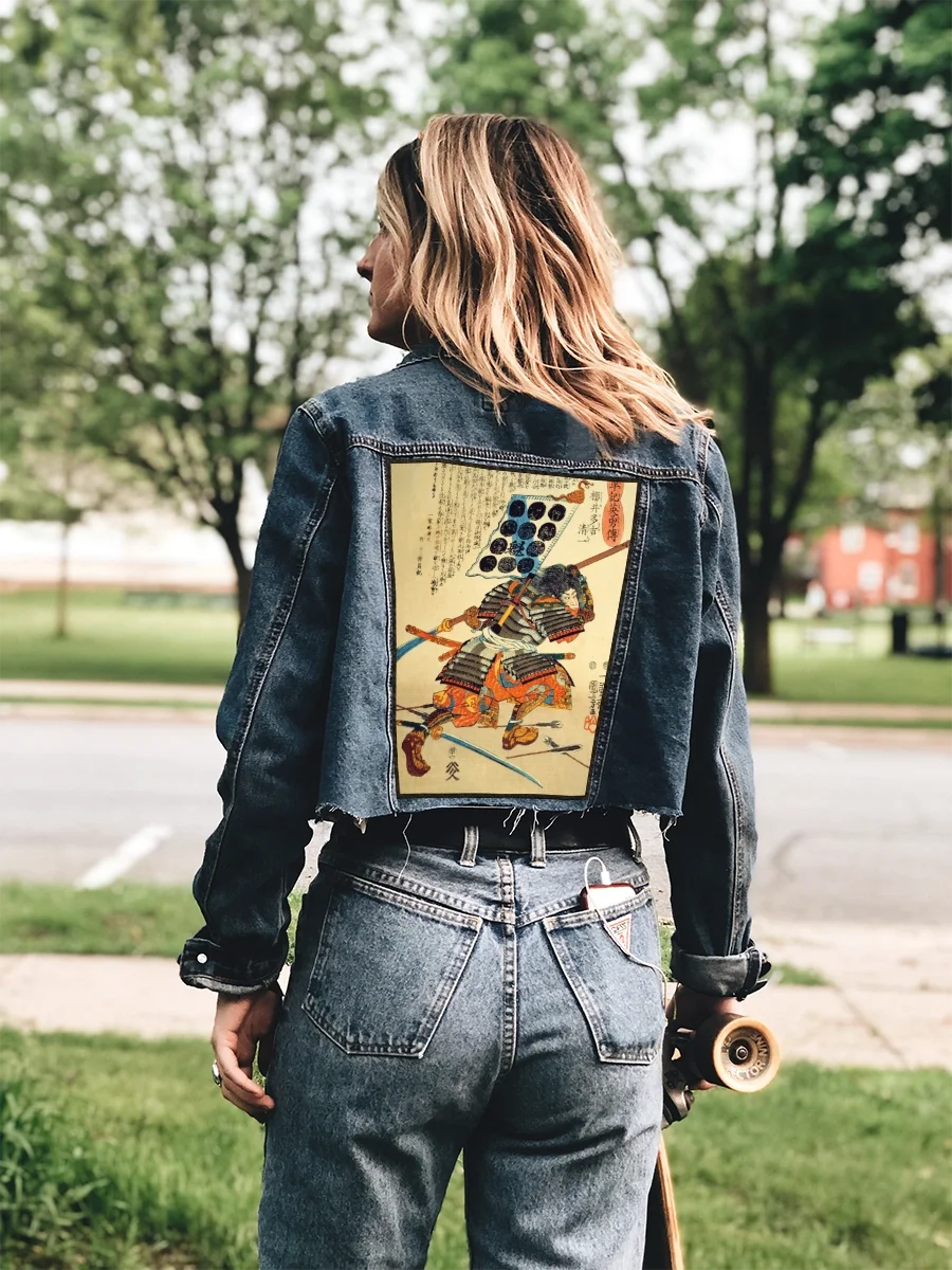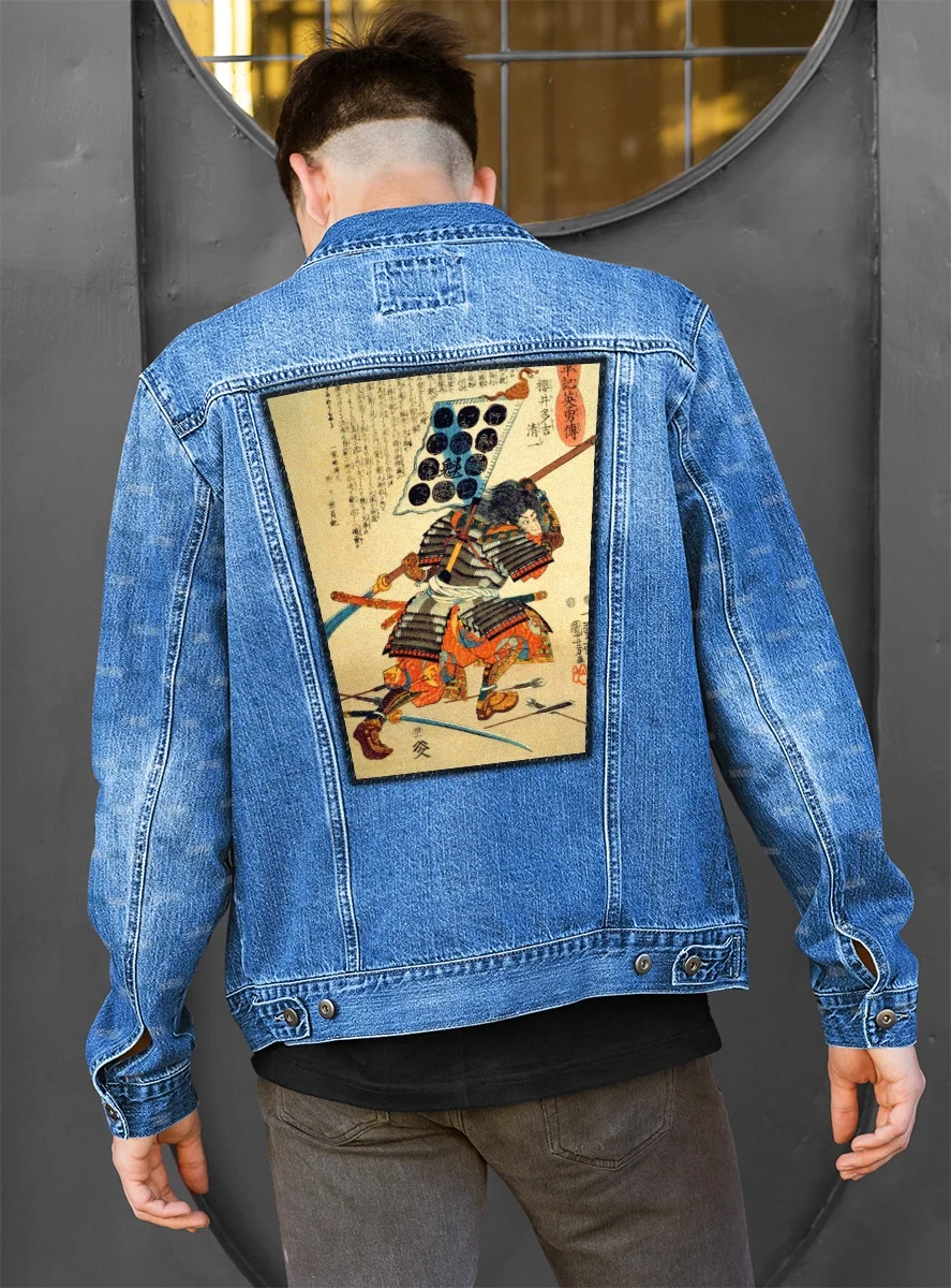 Ekran na plecy – duża naszywka z obrazem Samuraj Kiyokazu z naginatą – Utagawa Kuniyoshi