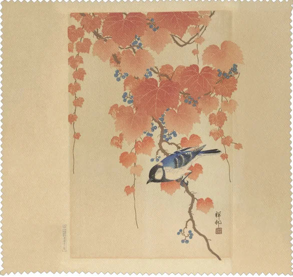 Ściereczka do okularów Sikora bogatka na gałęzi paulowni Ohara Koson