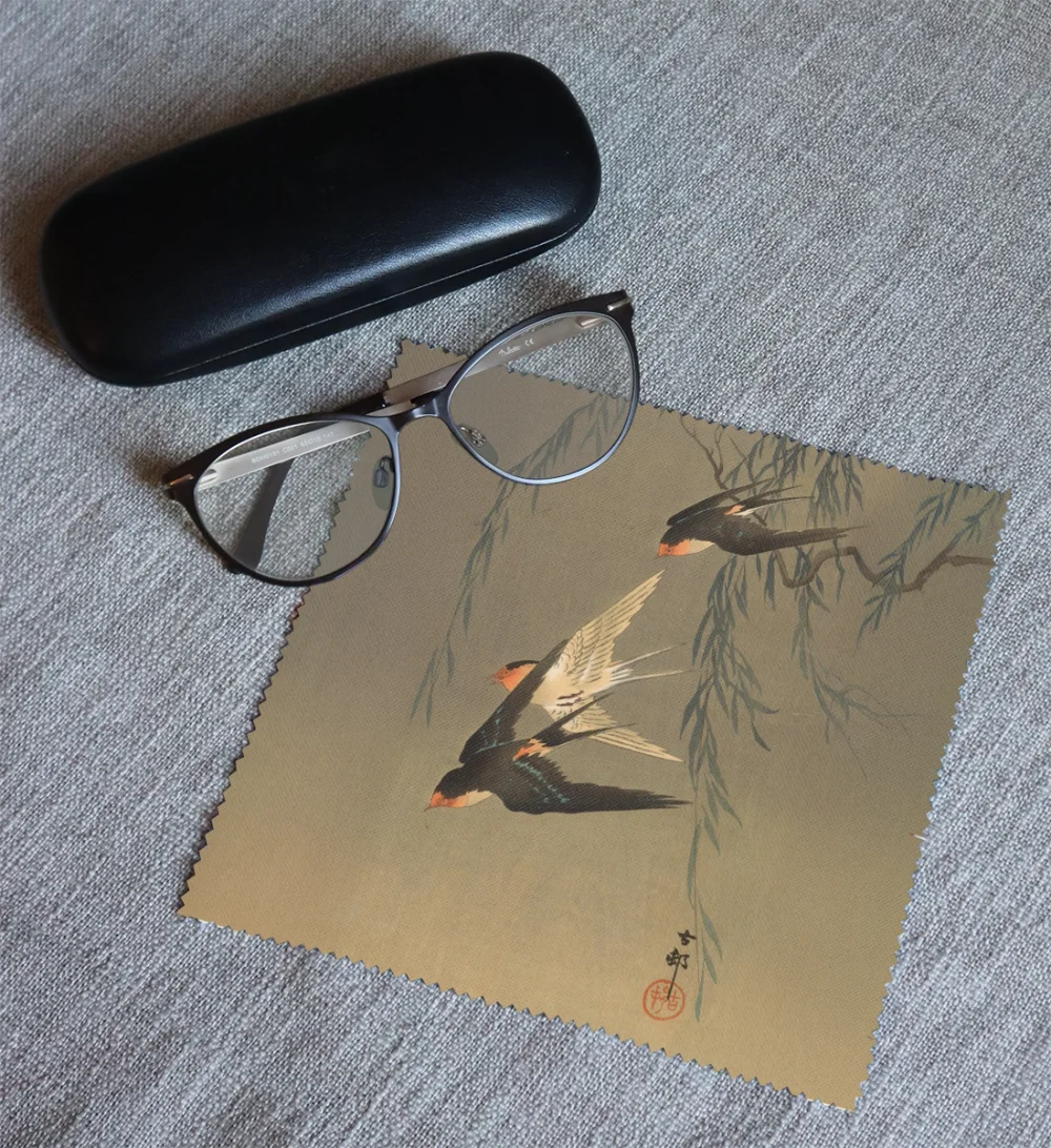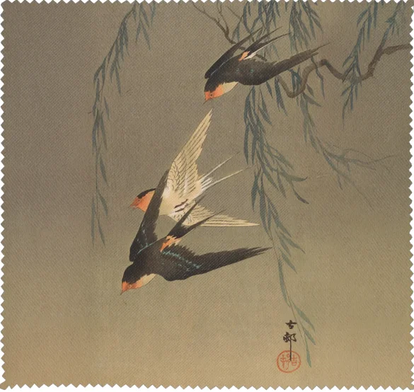 Ściereczka do okularów Trzy jaskółki rdzawoczerwone podczas nurkowania Ohara Koson