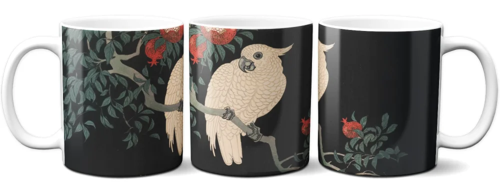 Kubek z nadrukiem obrazu Biała papuga i granat - Ohara Koson