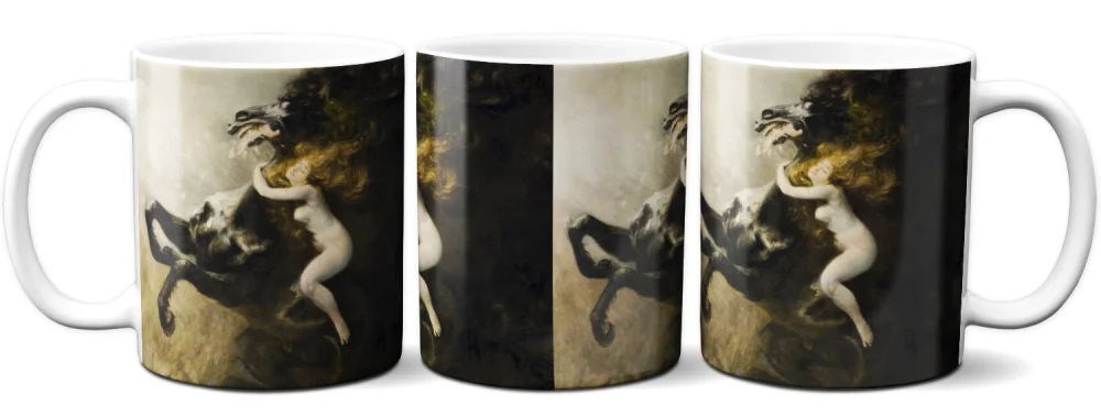 Kubek z nadrukiem obrazu Szał uniesień to propozycja dla osób, które chcą połączyć codzienny rytuał picia kawy lub herbaty z zamiłowaniem do malarstwa. To nie jest zwykły kubek z grafiką – to ceramiczny kubek dla miłośnika sztuki, który pozwala mieć ulubione dzieło zawsze blisko siebie. Reprodukcja obrazu na kubku którego autorem jest Władysław Podkowiński, nadaje mu wyjątkowy charakter i sprawia, że świetnie prezentuje się zarówno w domu, jak i w biurze.