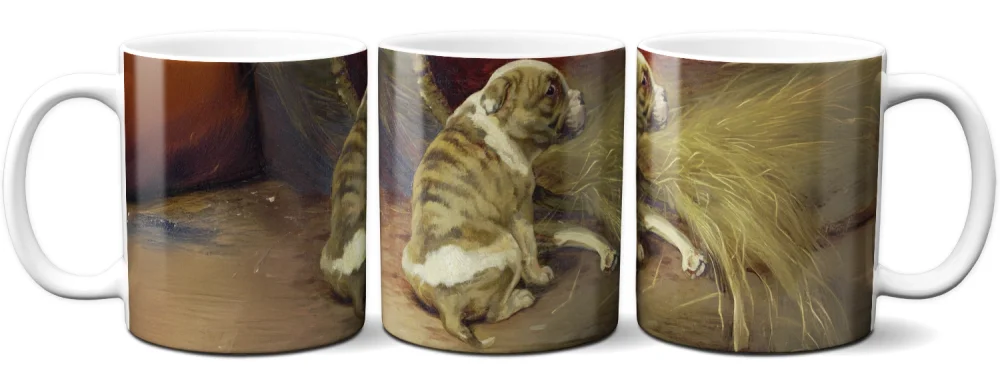 Kubek z nadrukiem obrazu Daj psu kość to propozycja dla osób, które chcą połączyć codzienny rytuał picia kawy lub herbaty z zamiłowaniem do malarstwa. To nie jest zwykły kubek z grafiką – to ceramiczny kubek dla miłośnika sztuki, który pozwala mieć ulubione dzieło zawsze blisko siebie. Reprodukcja obrazu na kubku którego autorem jest William Henry Hamilton Trood, nadaje mu wyjątkowy charakter i sprawia, że świetnie prezentuje się zarówno w domu, jak i w biurze.