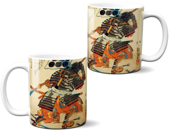 Kubek z nadrukiem obrazu Samuraj Kiyokazu z naginatą to propozycja dla osób, które chcą połączyć codzienny rytuał picia kawy lub herbaty z zamiłowaniem do malarstwa. To nie jest zwykły kubek z grafiką – to ceramiczny kubek dla miłośnika sztuki, który pozwala mieć ulubione dzieło zawsze blisko siebie. Reprodukcja obrazu na kubku którego autorem jest Utagawa Kuniyoshi, nadaje mu wyjątkowy charakter i sprawia, że świetnie prezentuje się zarówno w domu, jak i w biurze.