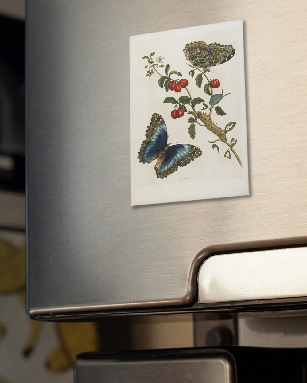 Magnes Great Blue Butterflies and Red Fruits Maria Sibylla Merian
