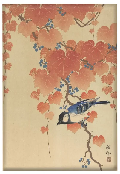 Magnes Sikora bogatka na gałęzi paulowni Ohara Koson
