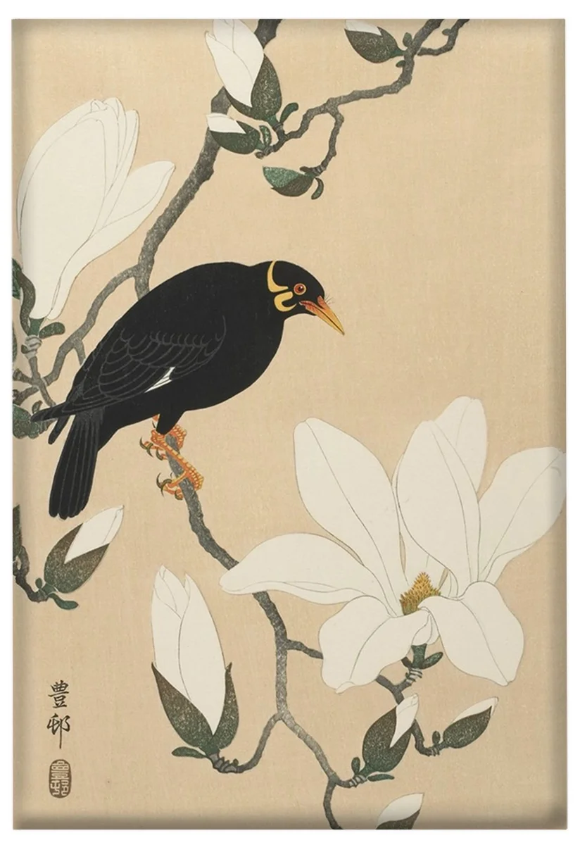 Magnes Wzgórze Myna na gałęzi magnolii Ohara Koson