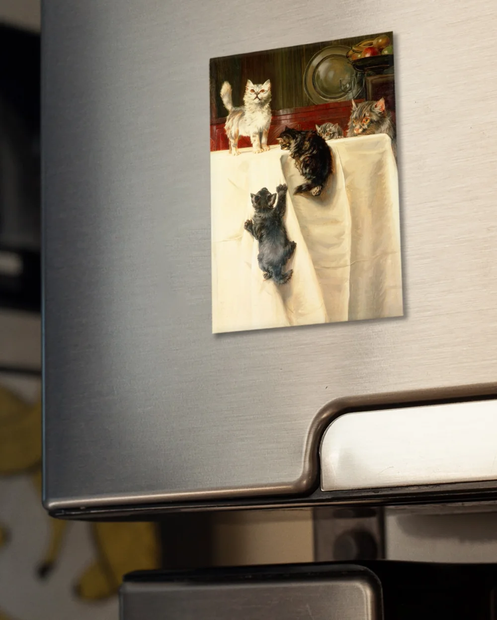Magnes można umieścić na lodówce, tablicy magnetycznej lub w dowolnym miejscu gdzie magnes się przyciągnie :)