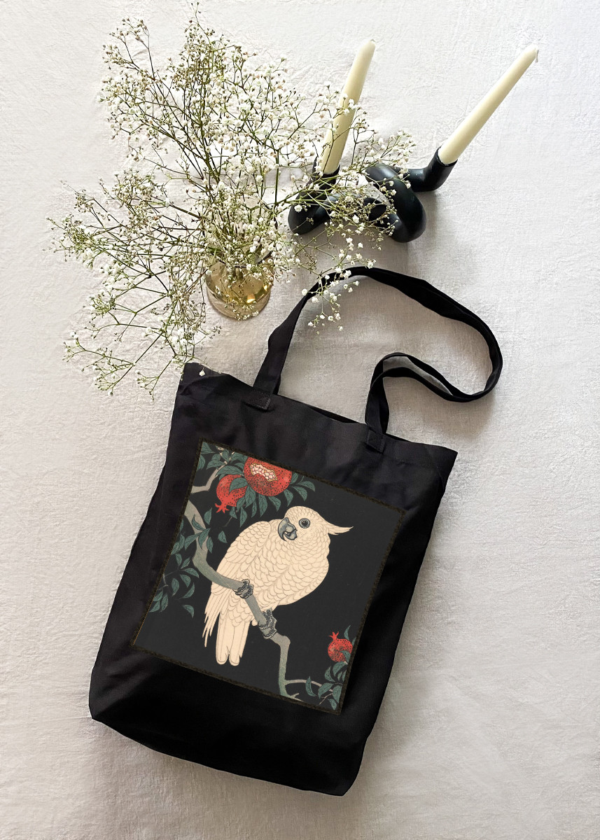 Torba z naszywką Biała papuga i granat Ohara Koson