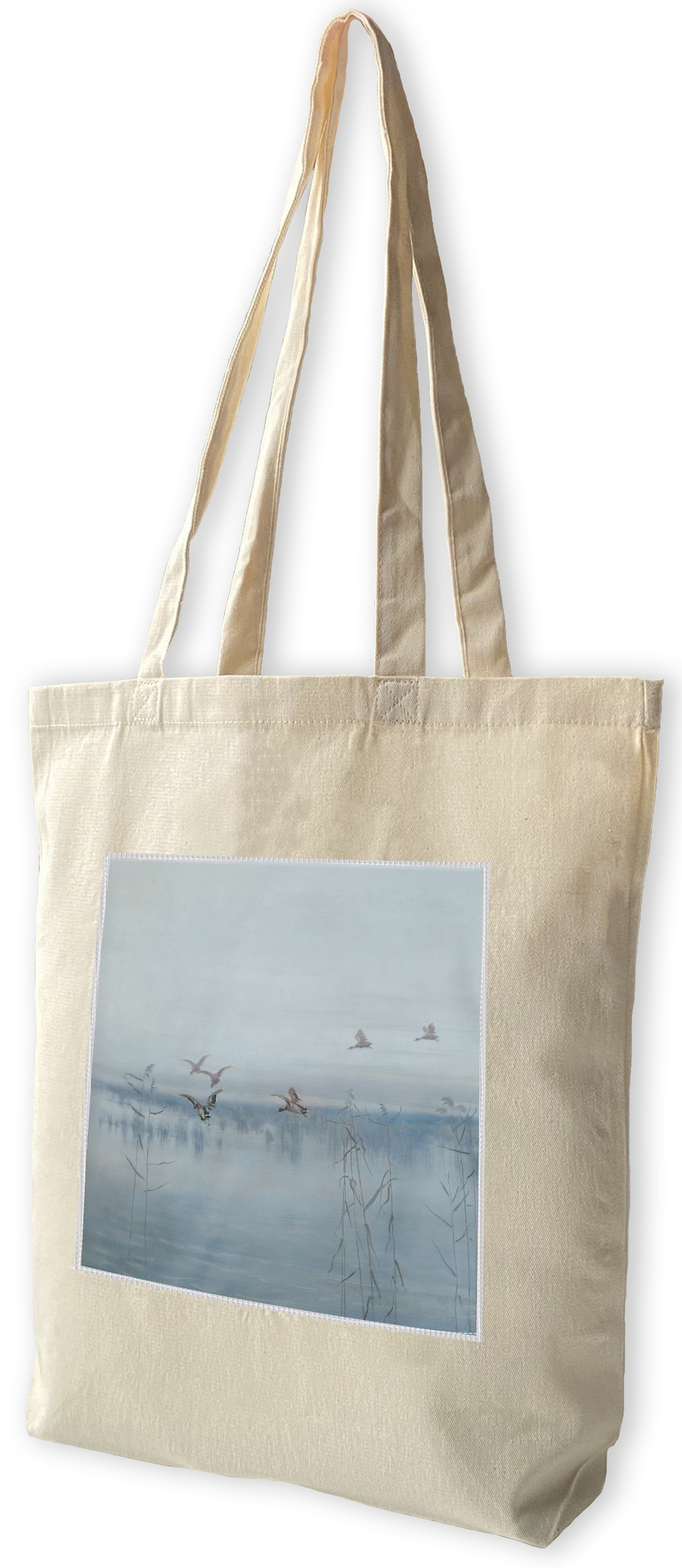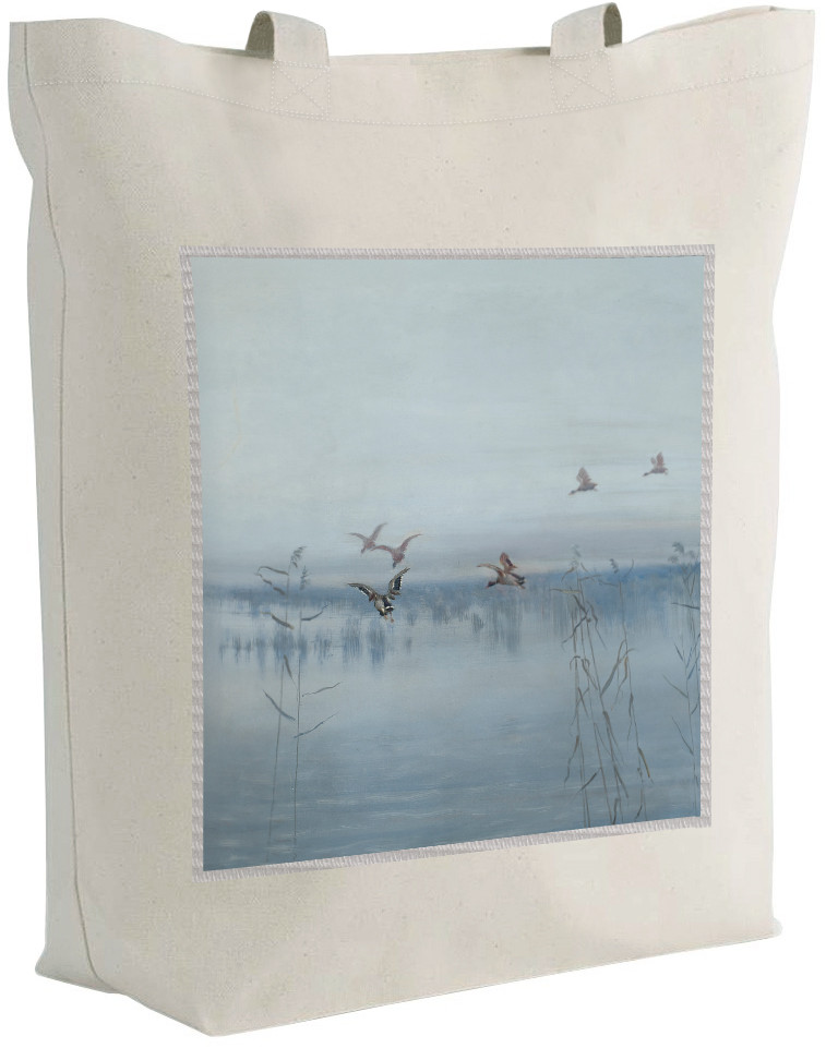 Reprodukcja obrazu Kaczki nad moczarami na torbie z dużą naszywką