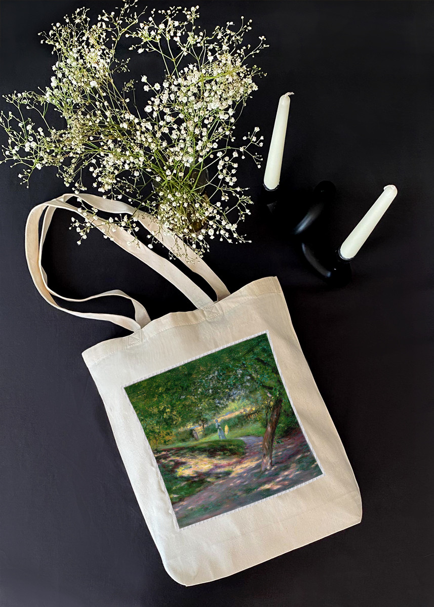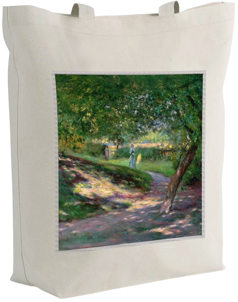 Reprodukcja obrazu W ogrodzie na torbie z dużą naszywką
