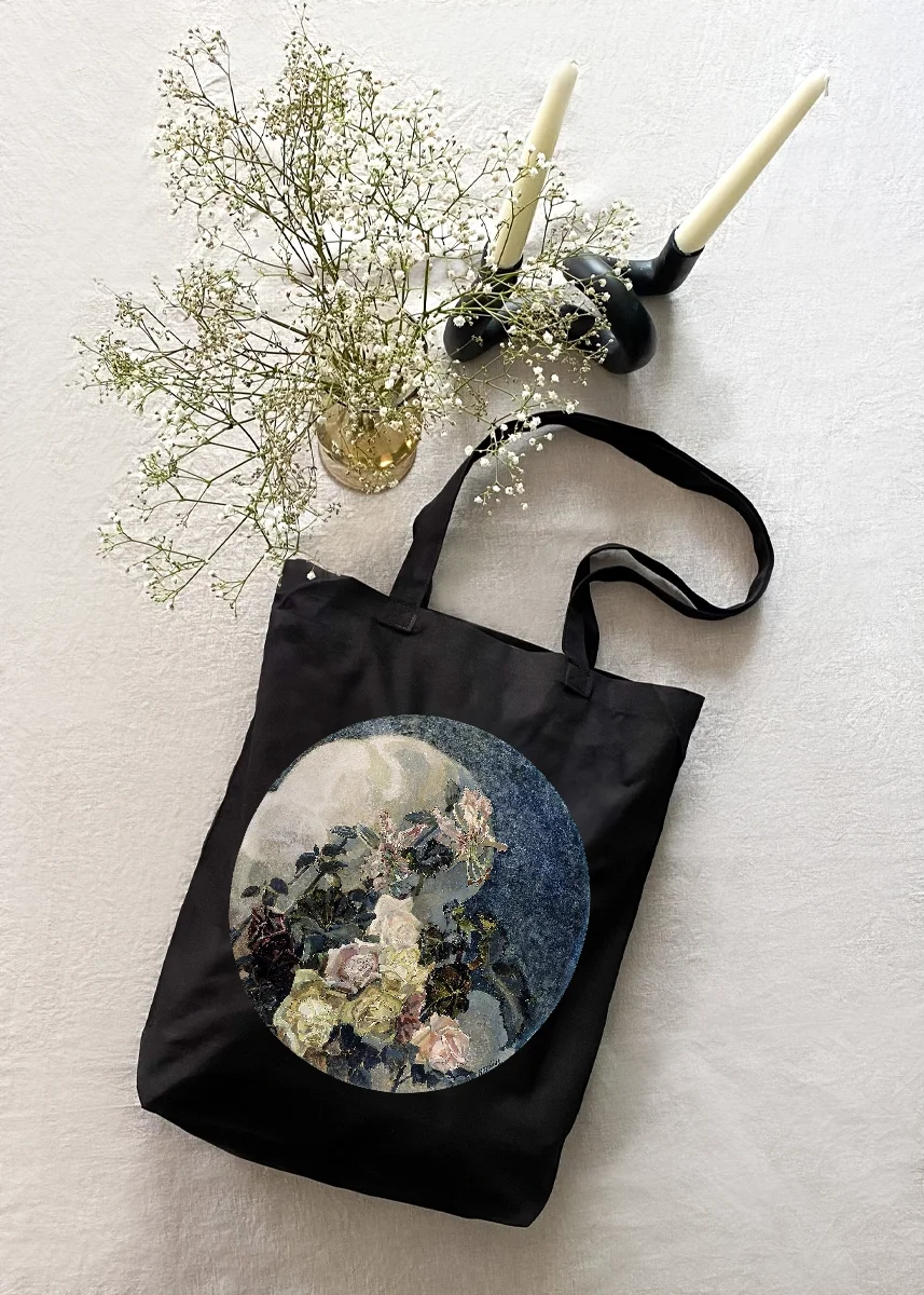 Torby dostępne są w dwóch klasycznych odcieniach: czarnym oraz naturalnym écru. Oba doskonale podkreślają artystyczny nadruk i pasują do wielu stylizacji – od codziennej po bardziej elegancką.