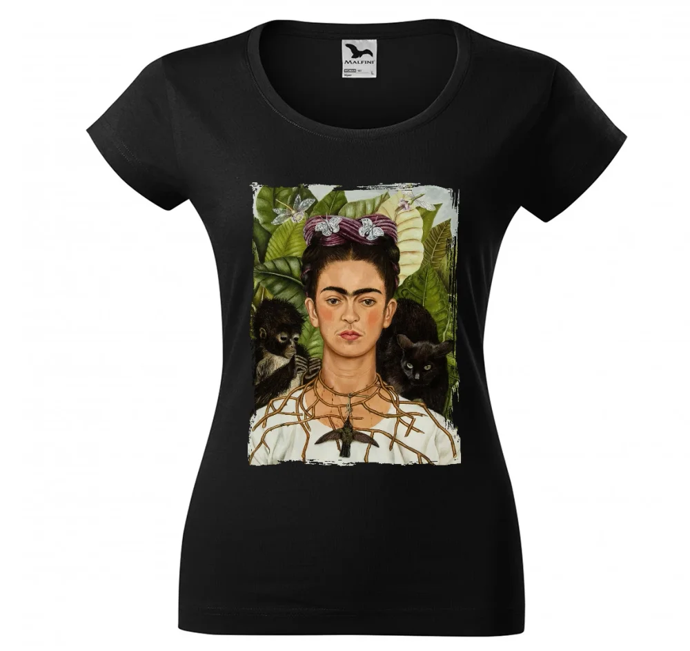 Bluzka damska z obrazem „Autoportret z cierniowym naszyjnikiem i kolibrem” – Frida Kahlo