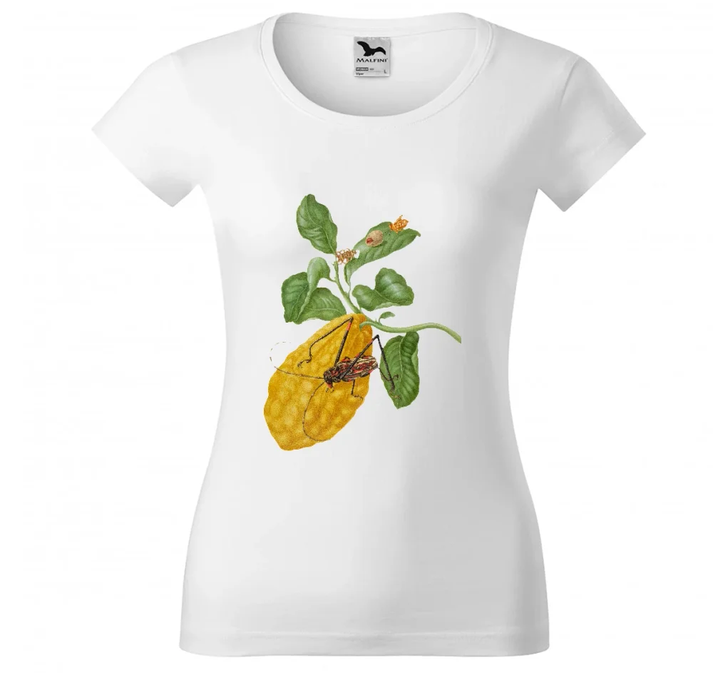 Bluzka damska Cytryna z gąsienicą małpy i chrząszczem harlekin Maria Sibylla Merian