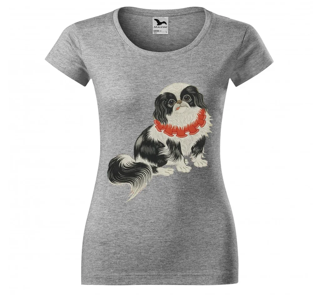 Bluzka damska z obrazem „Pies pekińczyk” – Ohara Koson