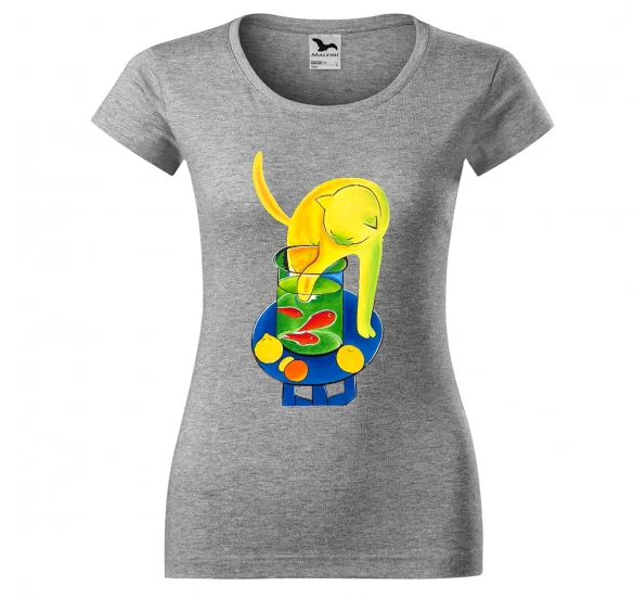 Obraz "Kot ze złotą rybką" na bluzce damskiej