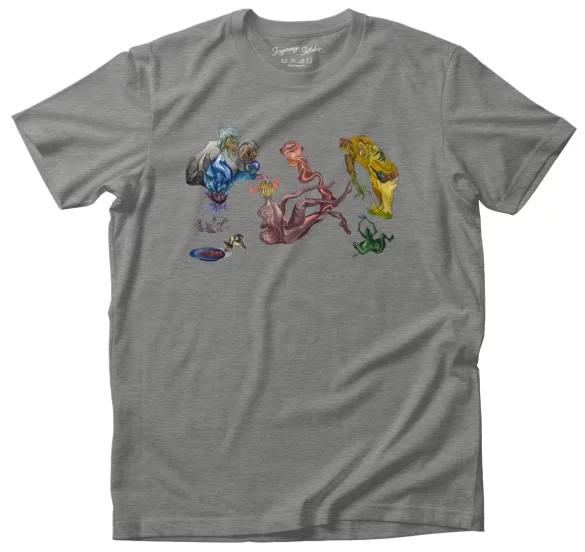 - Koszulka Tworzenie świata Witkacy w wersji szara. Stylowa koszulka z nadrukiem dzieła sztuki, łączy wygodę i artystyczny charakter. Idealna propozycja dla miłośników sztuki.