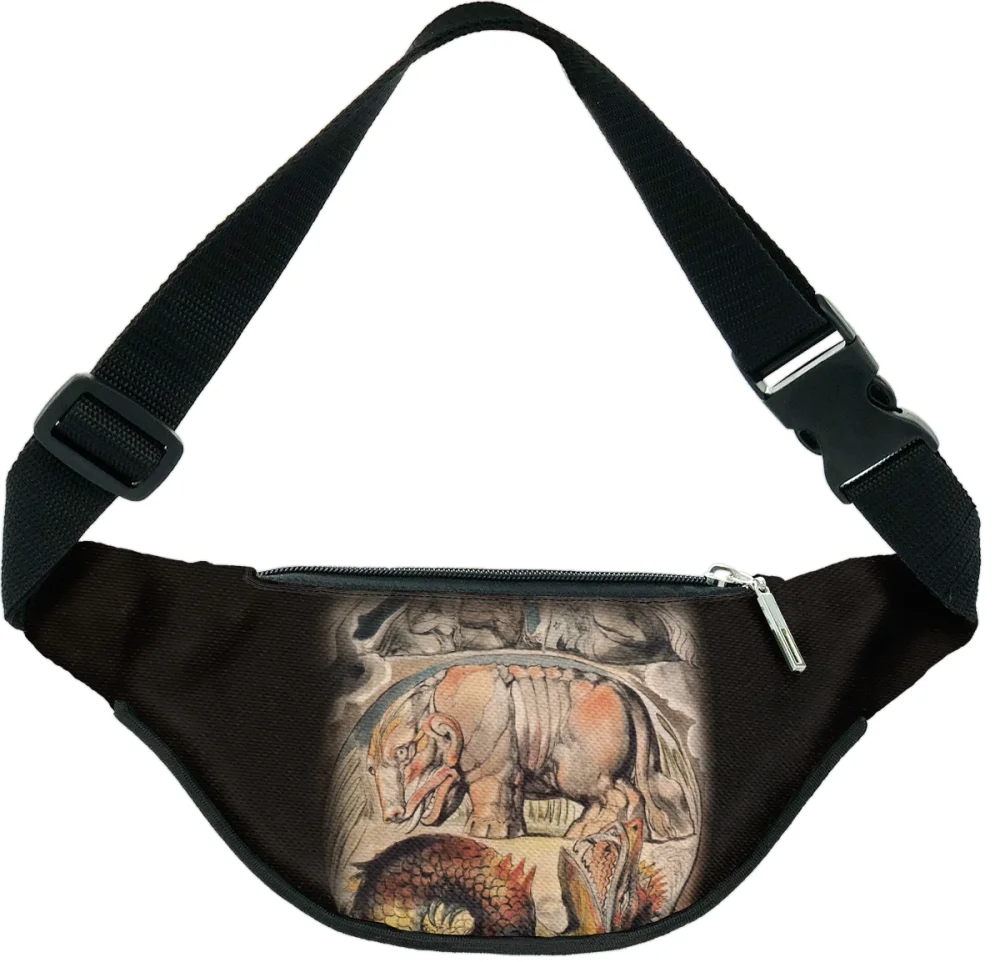 Zainspirowana światowym mistrzostwem, ta unikalna torba biodrówka prezentuje dzieło Behemoth i lewiatan autorstwa Williama Blake’a. Dzięki zastosowaniu nowoczesnej technologii nadruku FullPrint, grafika zachowuje pełne bogactwo kolorów oraz najdrobniejsze detale oryginału. To idealne połączenie funkcjonalności i estetyki dla każdego miłośnika sztuki, który chce wyróżnić się z tłumu. 🎨