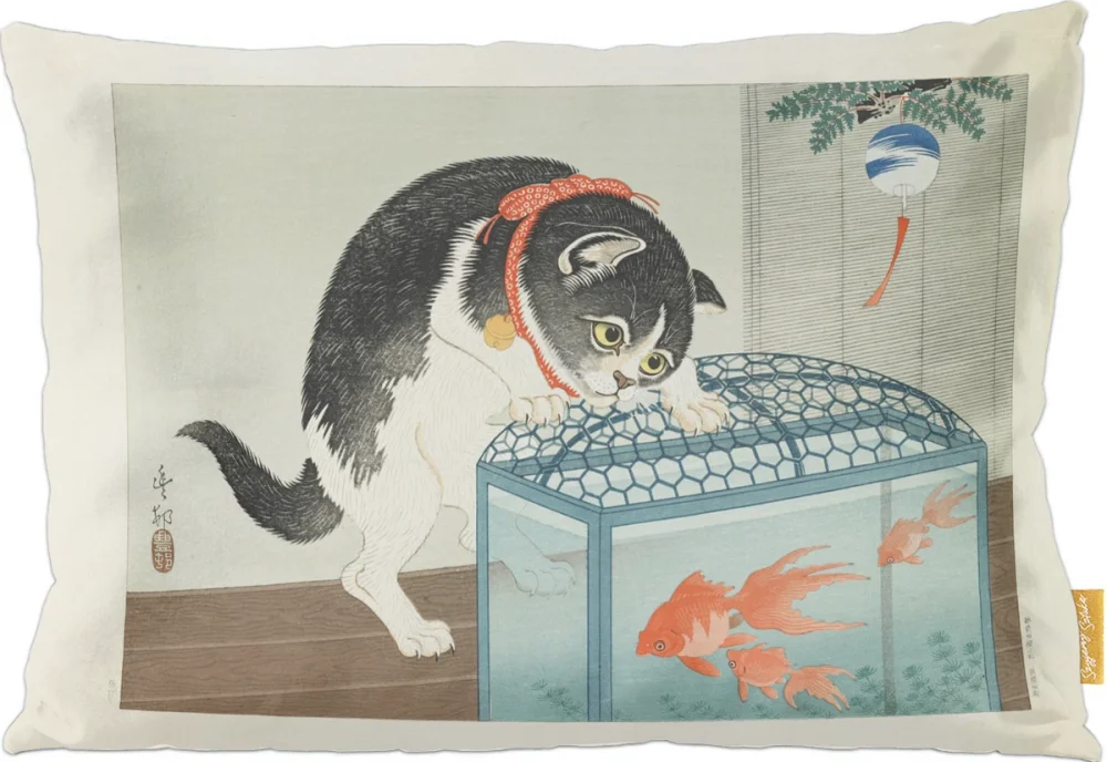 Poduszka Kot i złota rybka Ohara Koson