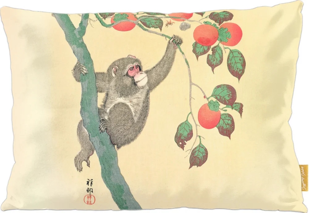 Poduszka z obrazem Małpa na drzewie persymonowym Ohara Koson