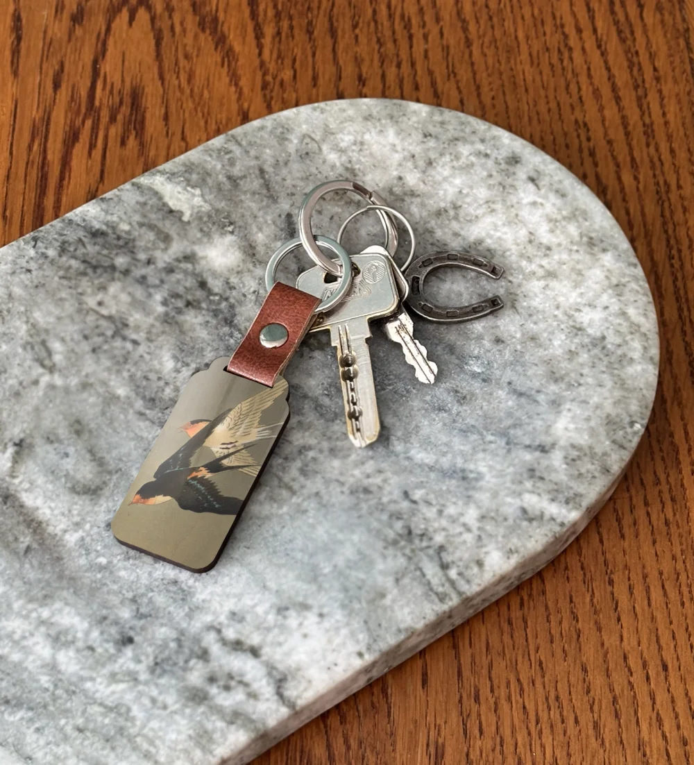 Podkreśl swoją pasję do sztuki dzięki brelokowi z obrazem Trzy jaskółki rdzawoczerwone podczas nurkowania. To niewielki, ale wyrazisty dodatek, który możesz mieć zawsze przy sobie – przy kluczach, plecaku lub torbie 🎨