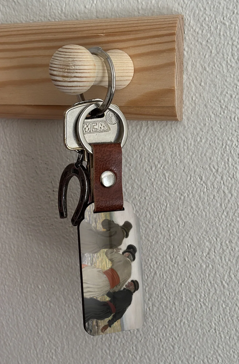Podkreśl swoją pasję do sztuki dzięki brelokowi z obrazem Pijani Chłopi. To niewielki, ale wyrazisty dodatek, który możesz mieć zawsze przy sobie – przy kluczach, plecaku lub torbie 🎨