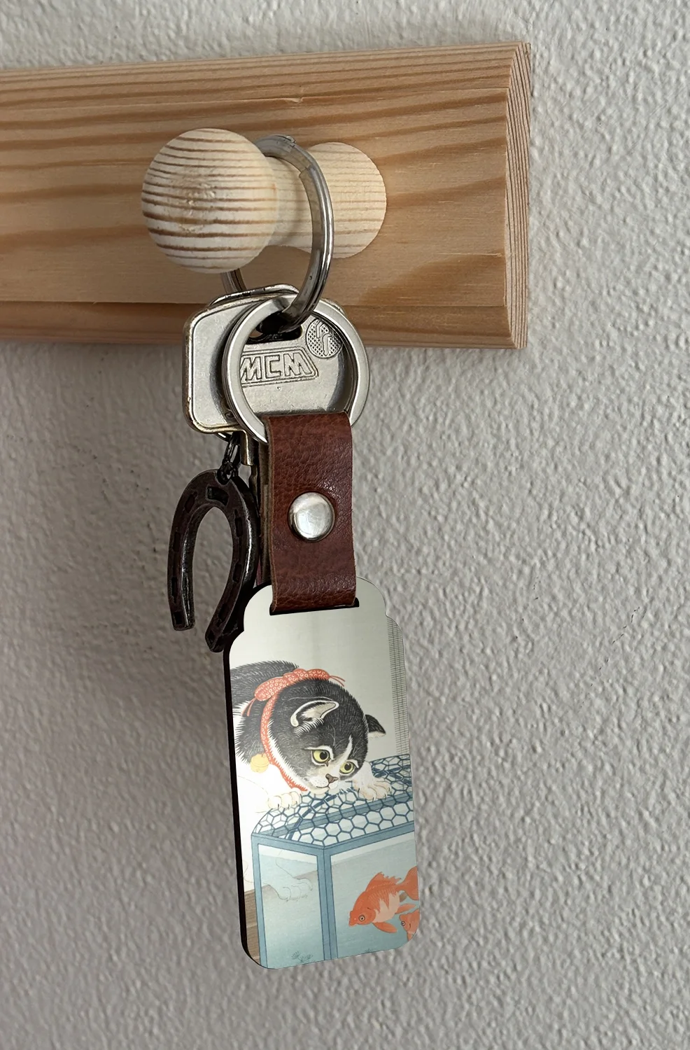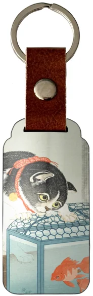 Brelok do kluczy Kot i złota rybka - Ohara Koson