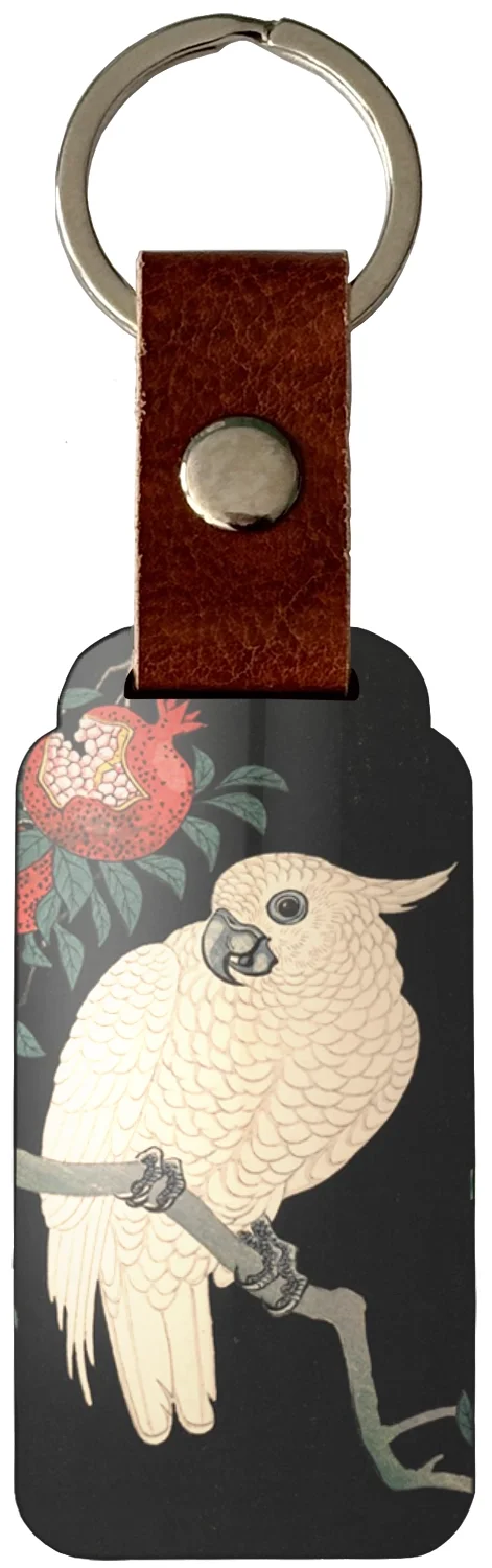 Brelok do kluczy Biała papuga i granat - Ohara Koson