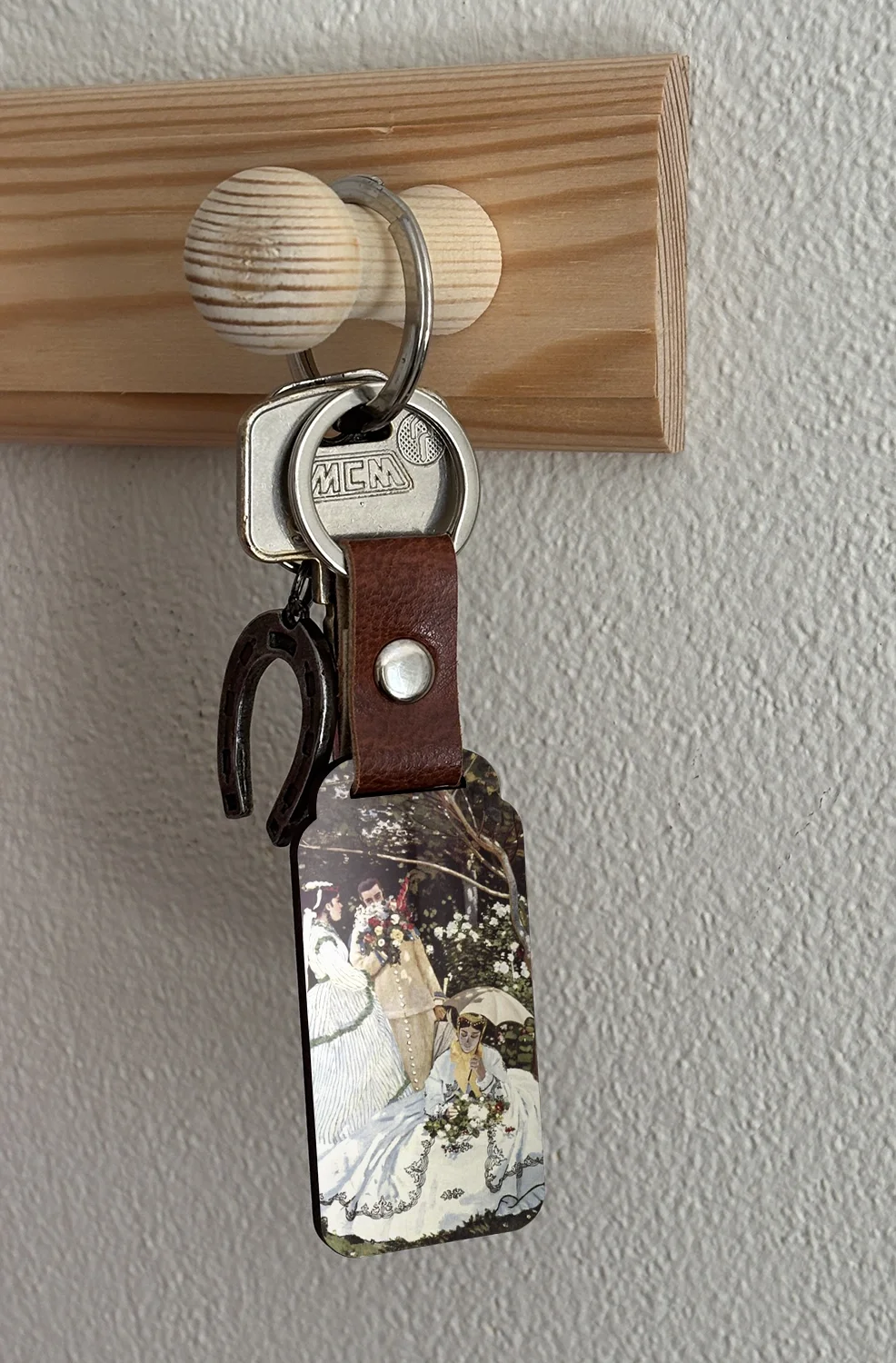 - ✨ Brelok do kluczy z obrazem Kobiety w ogrodzie Claude’a Moneta – mały, lekki i trwały gadżet ze sztuką. Świetny jako prezent i stylowy dodatek do kluczy lub torby. ❤️